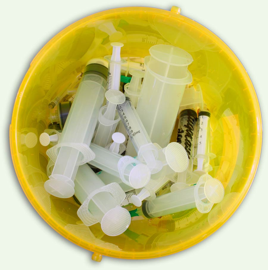 O estabelecimento também deve dispor de recipientes/sacos plásticos específicos para o descarte de todos os materiais utilizados nos atendimentos, além de lixeiras com as devidas identificações do tipo de resíduo que pode ser dispensado nela.