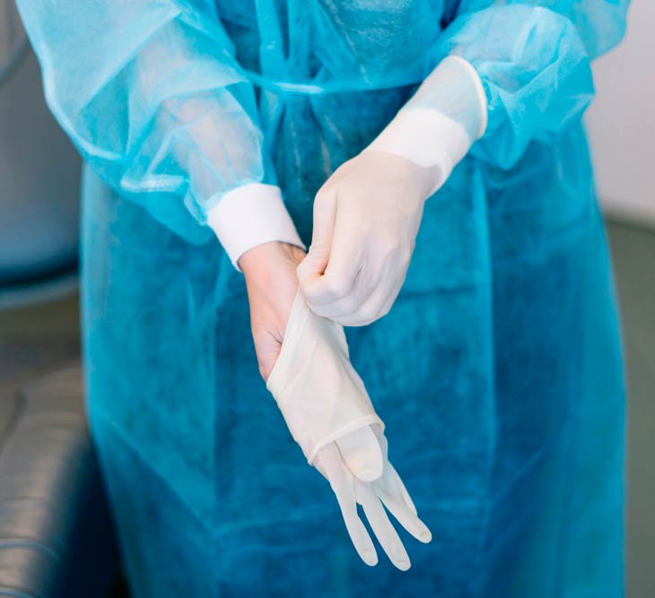 Uso de máscaras, luvas, jalecos ou avental