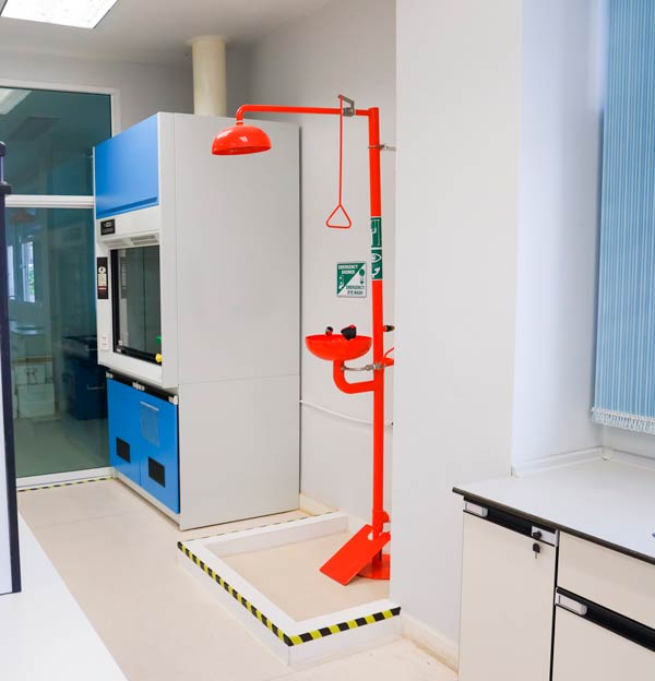 São imprescindíveis a todos os laboratórios. Têm o objetivo de minimizar ou eliminar os danos causados por acidentes com agentes biológicos, químicos que acometam olhos, face ou qualquer outra parte do corpo.