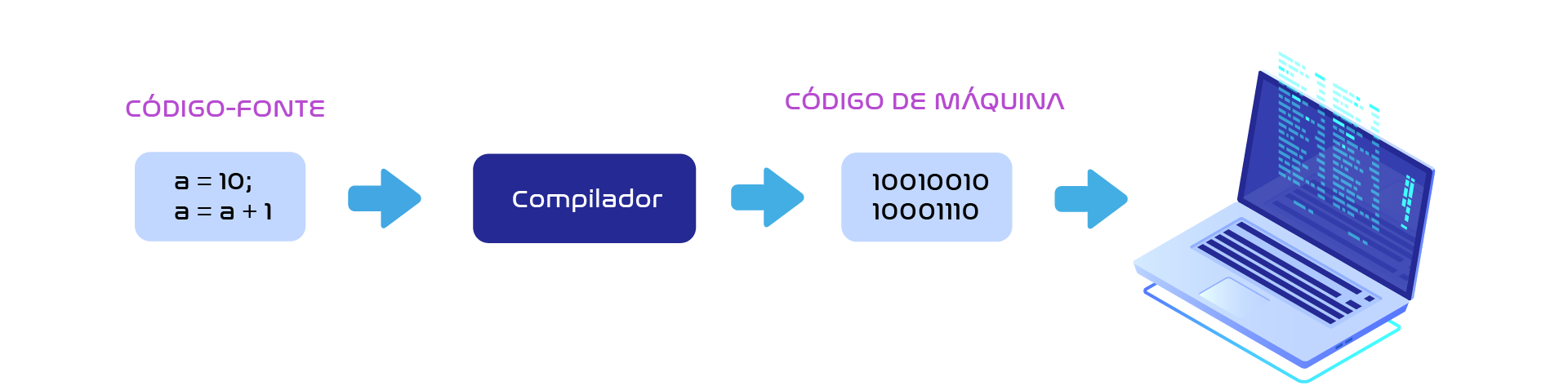 Até aqui, comentamos sobre uma categoria de linguagens de programação onde compiladores são usados para traduzir o código-fonte, de forma a obter um arquivo executável que pode ser distribuído aos usuários. Agora vamos nos concentrar na seguinte questão: