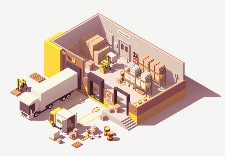 Armazéns que guardam matérias-primas ou maquinários. Como eles sempre são necessários a diversos processos, existe a necessidade de um espaço dedicado a oferecer todos os cuidados exigidos.