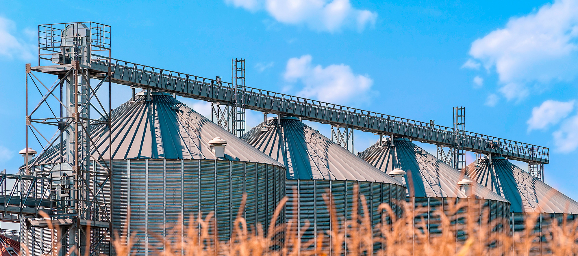 Os produtos originários da agropecuária. Nesses casos, os grãos de uma safra são colhidos e armazenados em silos responsáveis pelo abastecimento dos caminhões que encaminharão os produtos ao mercado consumidor.